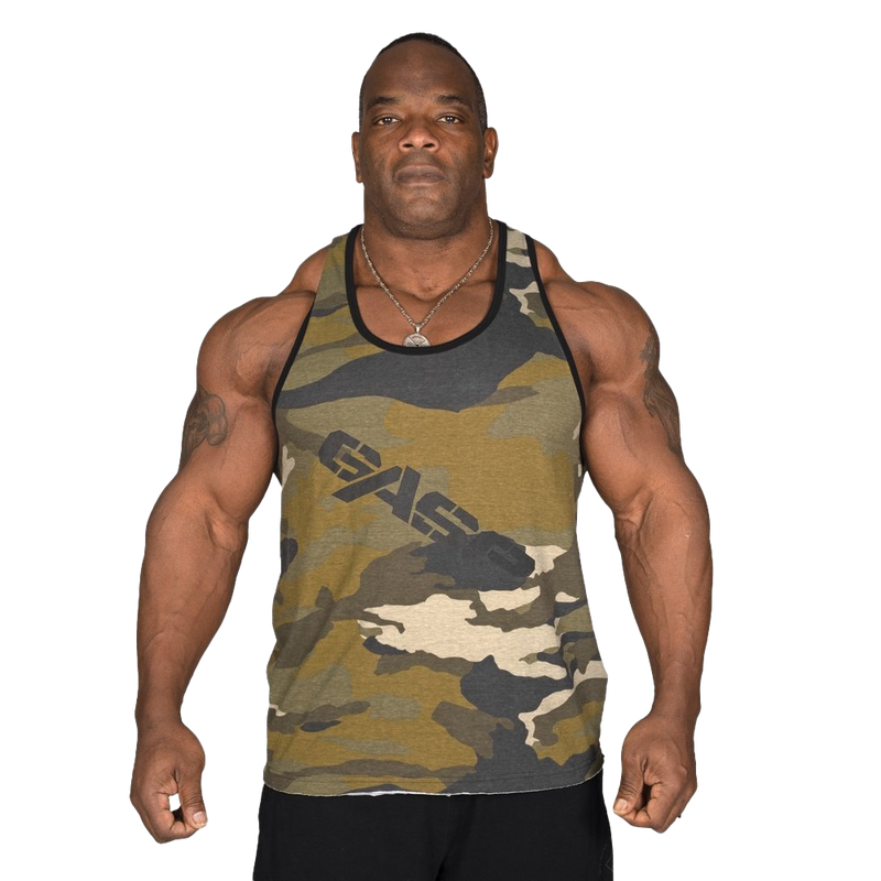 Discover the perfect blend of style and functionality with the GASP Vintage T-Back - Green Camoprint. Made from 100% soft jersey cotton, this vest not only feels fantastic against your skin but is built to withstand the rigors of the gym. The bold print is tailored for those who have big physiques, ensuring you stand out from the crowd.