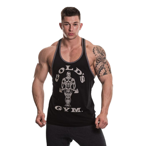 Golds Gym Muscle Joe Contrast Stringer - Black/Grey Marl
