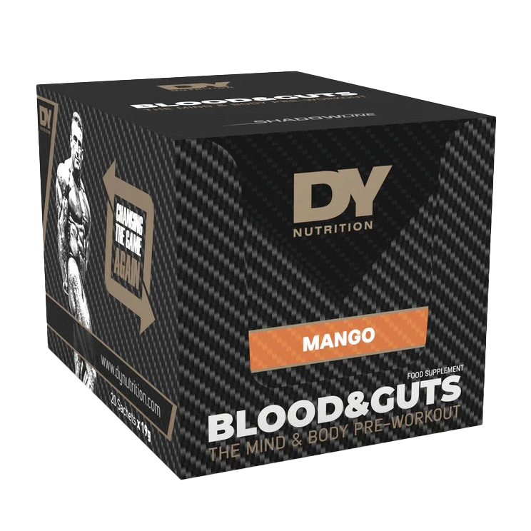 Introducing the Dorian Yates Blood and Guts Sachets Mango â your ultimate ally in pre-workout supplementation! Formulated to maximize your physical and mental performance, this potent pre-workout powder is engineered to elevate your focus, energy, and strength levels during workouts.